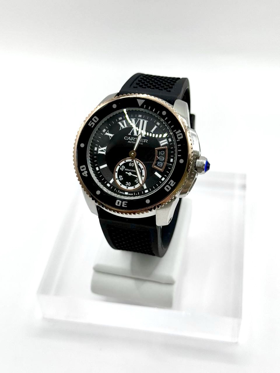 제품소재 316L 고강도 스텐레스 스틸,18k 로즈골드,고강도 특수이온 IPG 도금 벤드타입/소재 폴딩형 디버클 (Deployant-Clasp)타입, 수입산 브라운소가죽 레더스트랩 (Leather Strap)