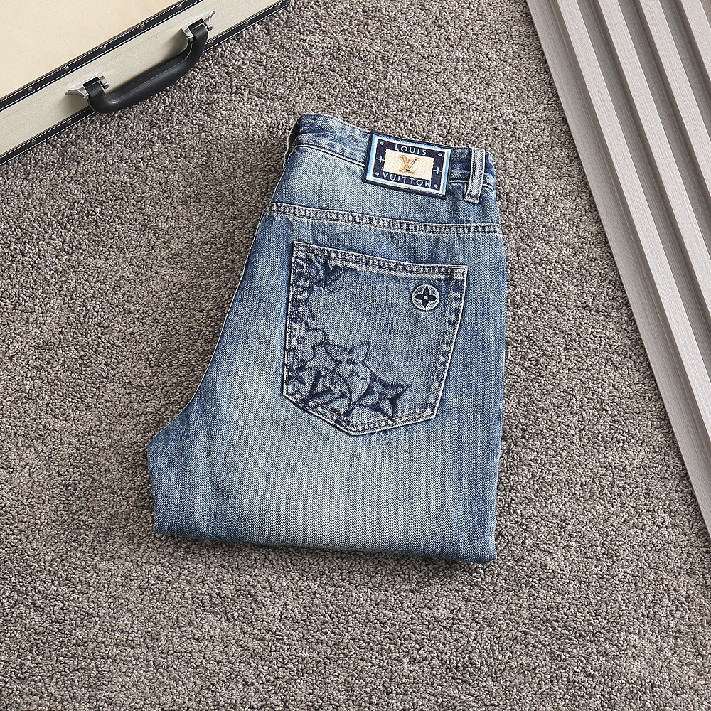 [국내배송]루이비통 신상 모노그램자수로고 골드파츠 스판 데님진