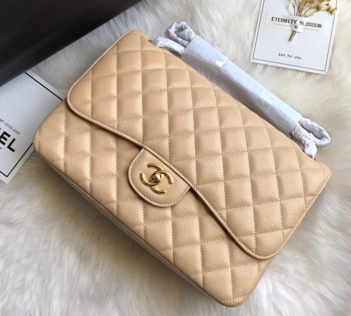 [국내배송]샤넬 클래식 플랩백 캐비어 베이지 금장 라지 A58600