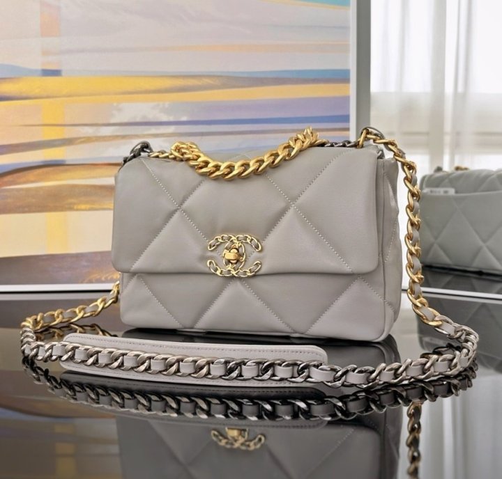 “[국내배송]샤넬 19 플랩백 미듐 그레이 금장 AS1160”의 첫 상품평을 남겨 주세요