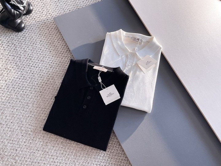 [국내배송]에르메스 2025SS 자가드펀칭 포인트 쿨니트 카라 티셔츠