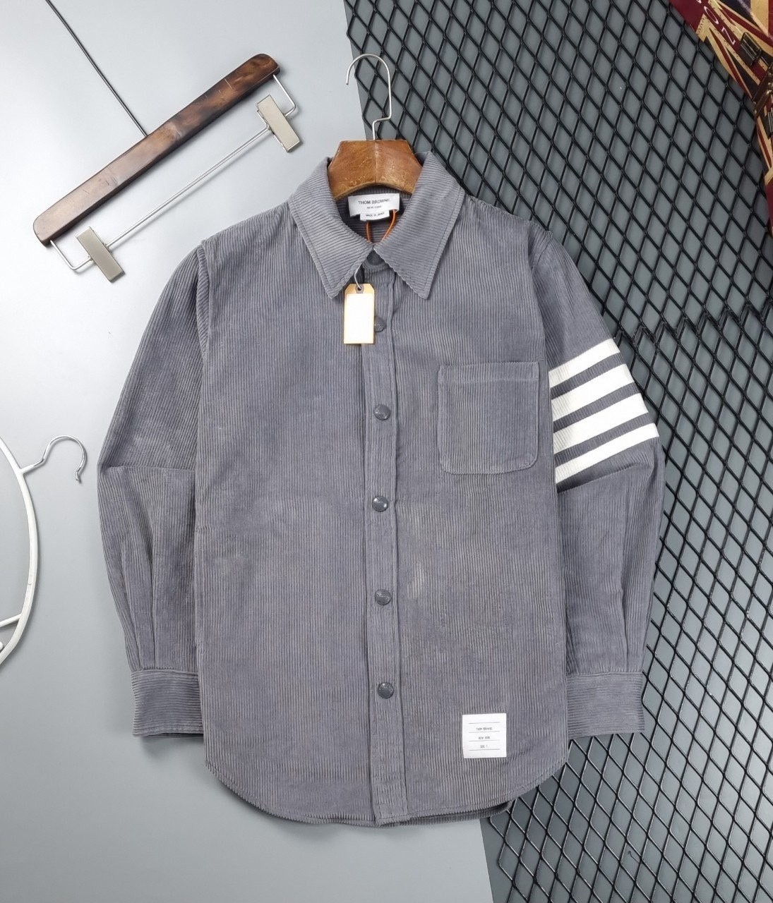 [국내배송]톰브라운 가먼트다이 코듀로이 사선완장 프론트 셔츠자켓 (11월 10일까지만 판매)