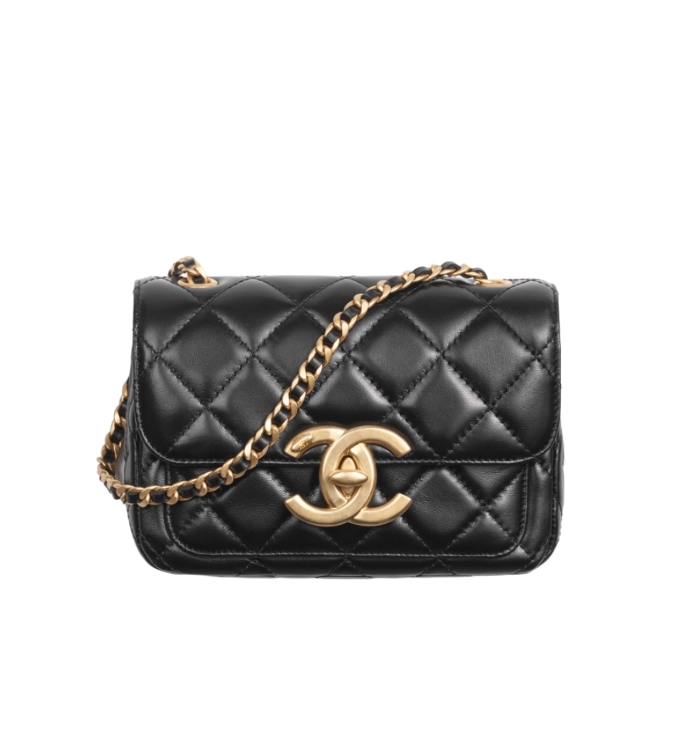 [프리미엄/해외배송]빅CC로고 미니 플랩 백(블랙/금장/램스킨)