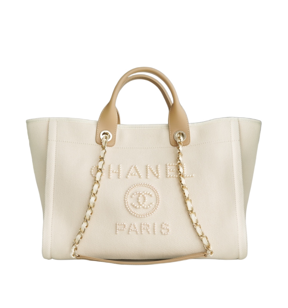 진주 로고 캔버스 토트백(내추럴/금장/캔버스)