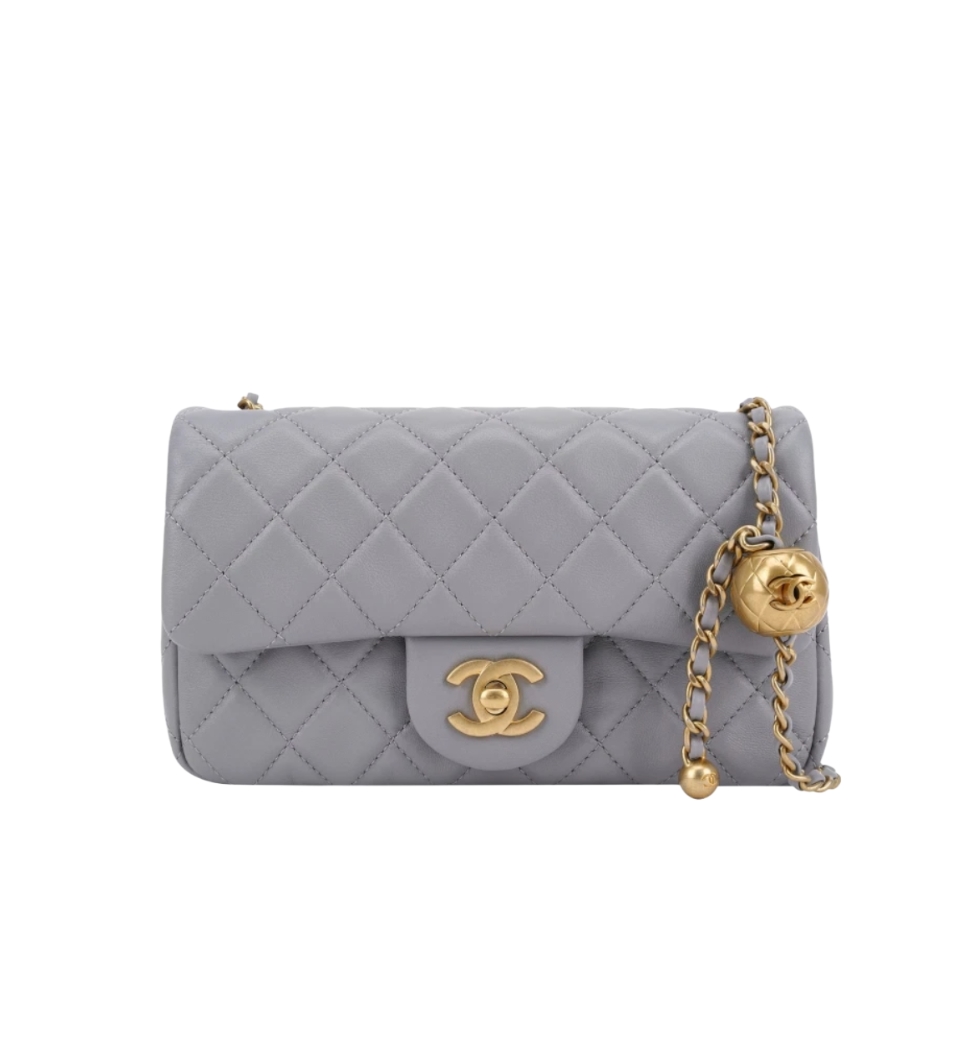 클래식 골드볼 미니 플랩 백(그레이/금장/램스킨)