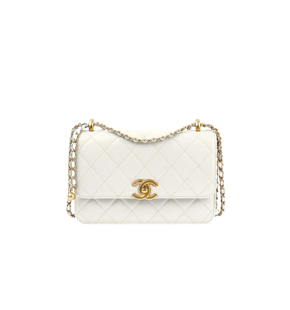 클래식 더블 골드볼 스몰 플랩 백(화이트/금장/카프스킨)