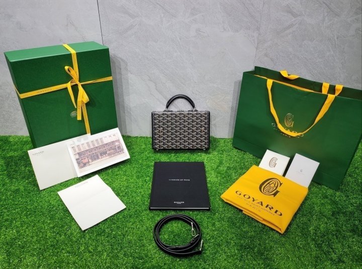 고야드 그랑 호텔 트렁크 백 입고 되었습니다 외피/내피 가죽,금속,로고,각인,바느질마감실땀수,포장까지 정품급 입니다 선물용으로 너무 좋은제품 입니다. 사진동일 케이스, 더스트, 쇼핑백, 풀구성 출고 입니다.