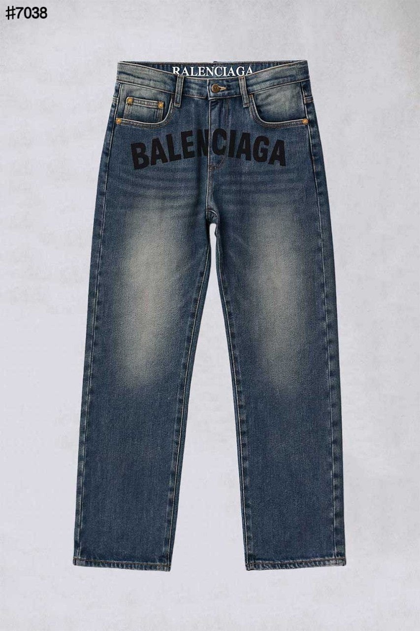 [국내배송]발렌시아가 로고 더티 다크 블루 스트레이트 데님 팬츠