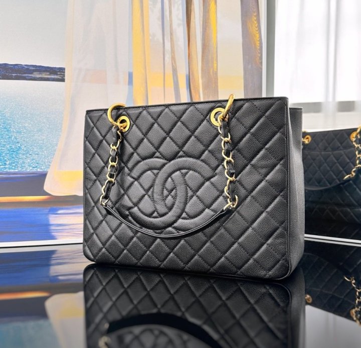 [국내배송]샤넬 그랜드샤핑 체인 숄더백 캐비어 블랙 금장 A90995