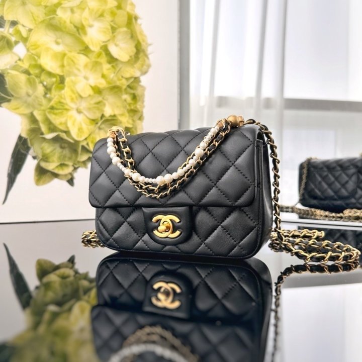 [국내배송]샤넬 24SS 펄 미니 플랩백 블랙 금장 AS4384