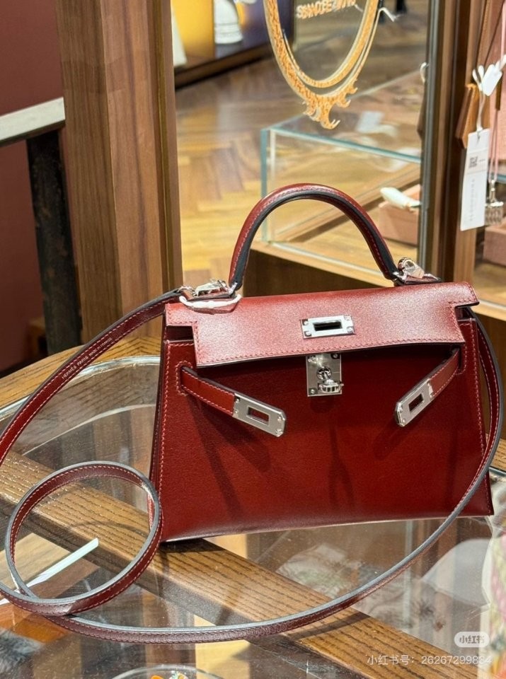 ✔ Box Calf 특유의 유광 텍스처와 에르메스 레드의 깊은 색감