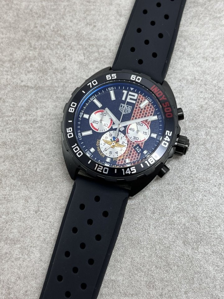 카레이싱의 정신을 일상의 모험으로 전환시킨 스포츠타임피스는 세 개의 크로노그래프 블랙 카운터와 완벽한 조화를 이룹니다 데일리 워치로 강추합니다 고급케이스 포함