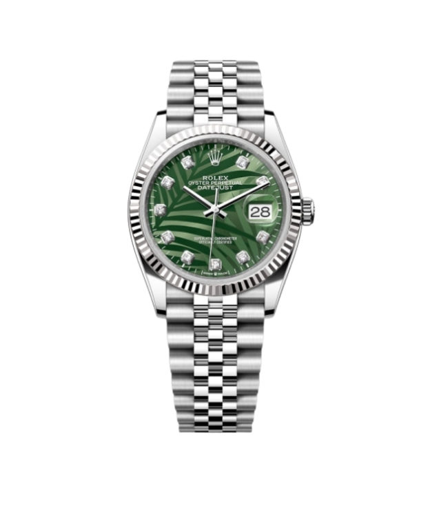 롤렉스 데이저스트 36mm 126234-0055 Full 904L Diamond Olive Green Palm Motif Dial Jubilee[VS]