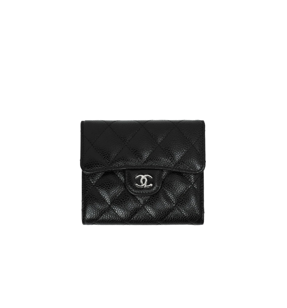 *정품가죽* 클래식 플랩 스몰 지갑(블랙/은장/캐비어)