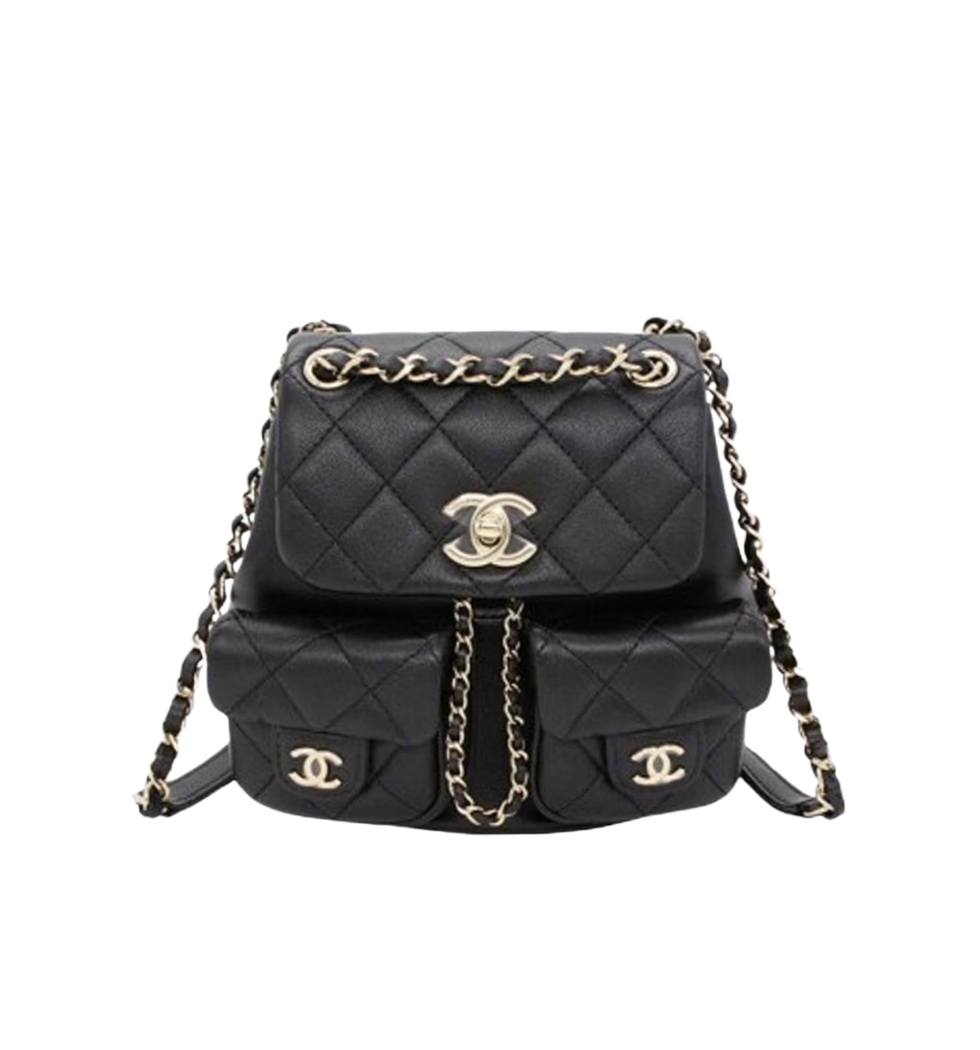 듀마 백팩 더블포켓 스몰(블랙/금장/카프스킨)