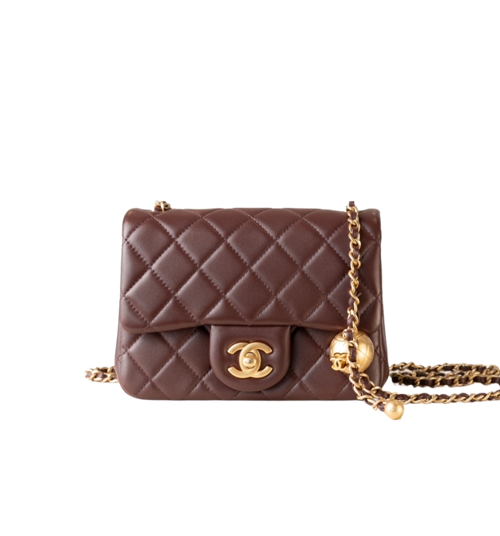 클래식 골드볼 쁘띠삭 플랩 백(버건디/금장/램스킨)