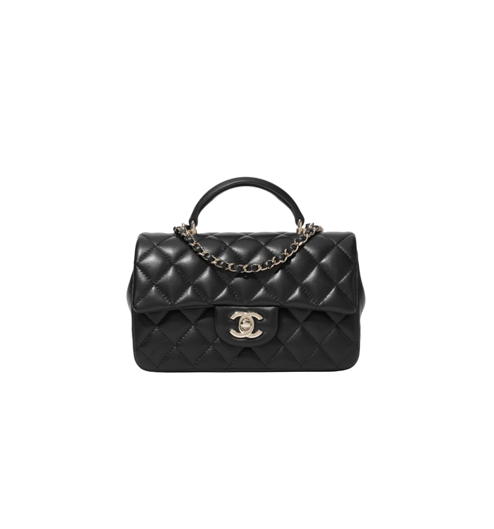 클래식 탑핸들 미니 플랩 백(블랙/금장/램스킨)