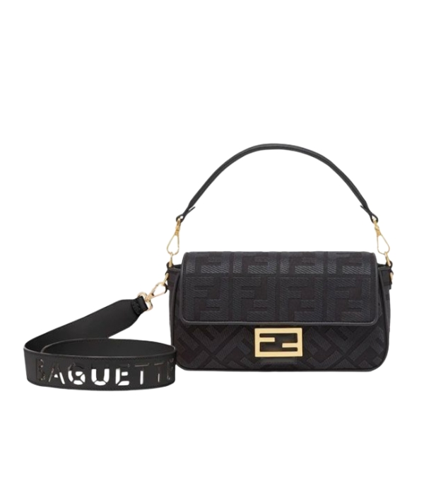 [프리미엄/해외배송]펜디 바게트 백 미디엄 FF 스트랩(블랙/자카드)