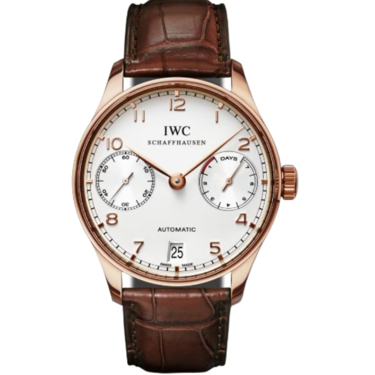 IWC 포르투기즈 Automatic 42mm IW500701 Rose Gold Leather Strap Arabic Numerals Silver Dial[ZF]