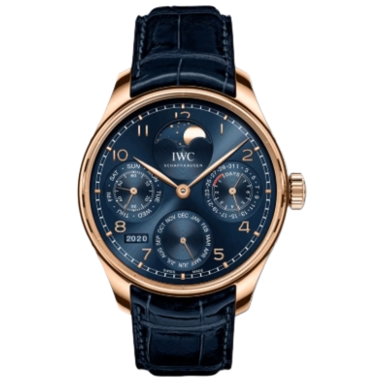 IWC 포르투기즈 Perpetual Calendar Boutique Edition 44mm IW503312 Rose Gold Leather Strap Arabic Numerals Blue Dial[APS]